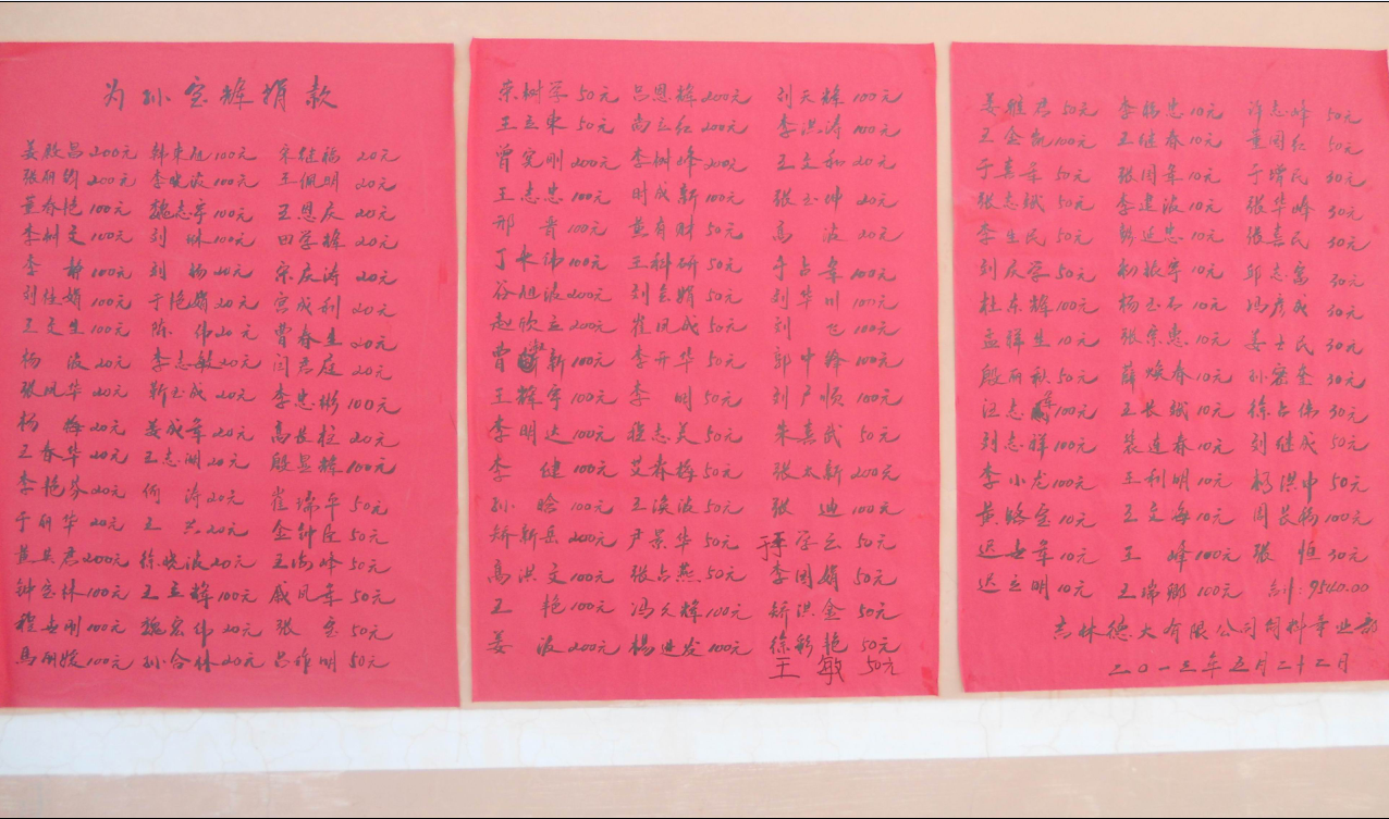 “一方有難,八方支援,奉獻(xiàn)愛心”是中華民族的傳統(tǒng)美德,為孫寶輝同志不錯過最佳治療期,我吉林德大有限公司飼料事業(yè)部全體同仁,在姜殿昌副總經(jīng)理的帶動下,于2013年5月22日為孫寶輝同志捐款9540元人民幣,以解其燃眉之急。點點愛心,匯集成河,無私助人,真情暖人心
